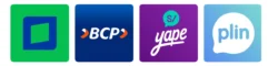 Métodos de pago disponibles: transferencia bancaria, Yape, Plin, tarjetas.